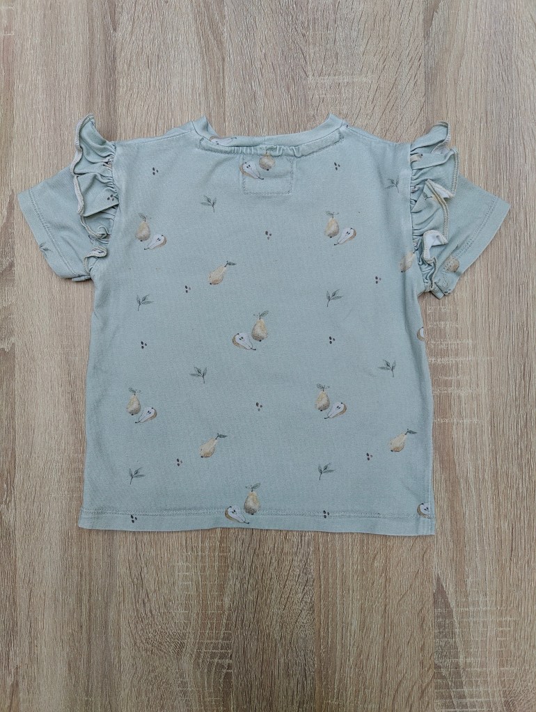 Deze t-shirt is perfect voor elk seizoen. Kan heel leuk gecombineerd owrden met de Gus salopette die we ook nog in maat 98 beschikbaar hebben (Zie volgende foto’s). Goed verzorgd door de vorige Woezel waardoor deze nog in goede staat is.