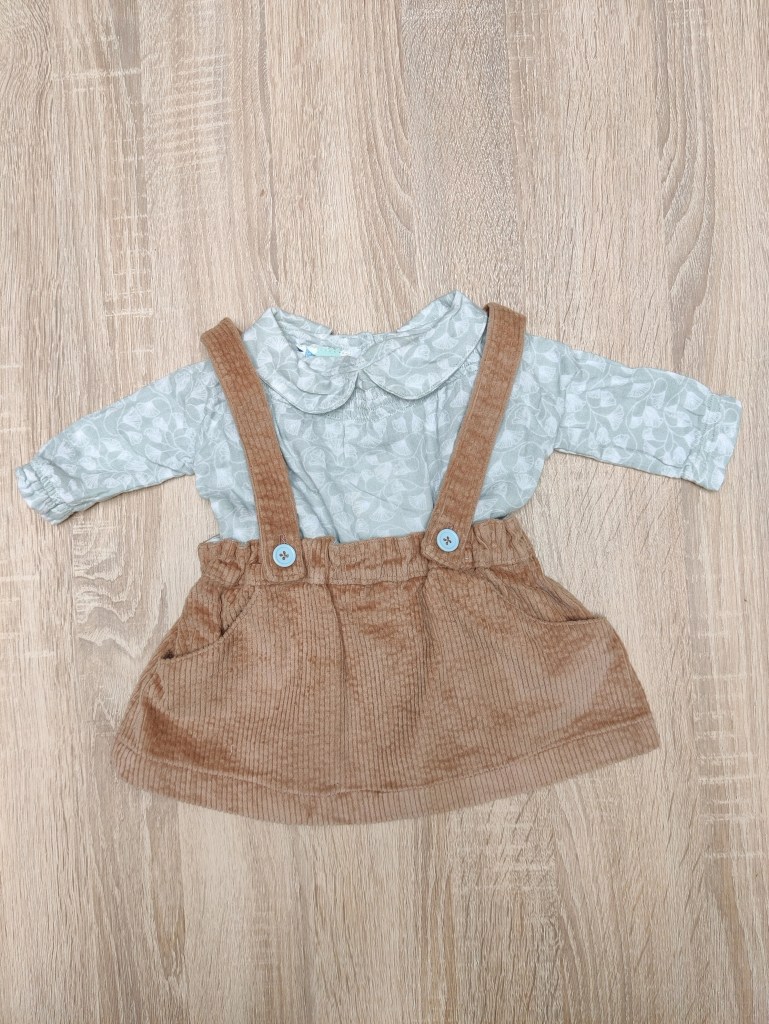 Deze mooie blouse valt los onderaan, heeft een mooi Peter Pan kraagje en 2 elastiekjes rond de polsen. De sluiting is met knoopjes op de rug. Combineert mooi met het Janne jurkje, welke we ook in maat 62 beschikbaar hebben bij onze “pre-loved wondertjes” (Zie volgende foto’s).